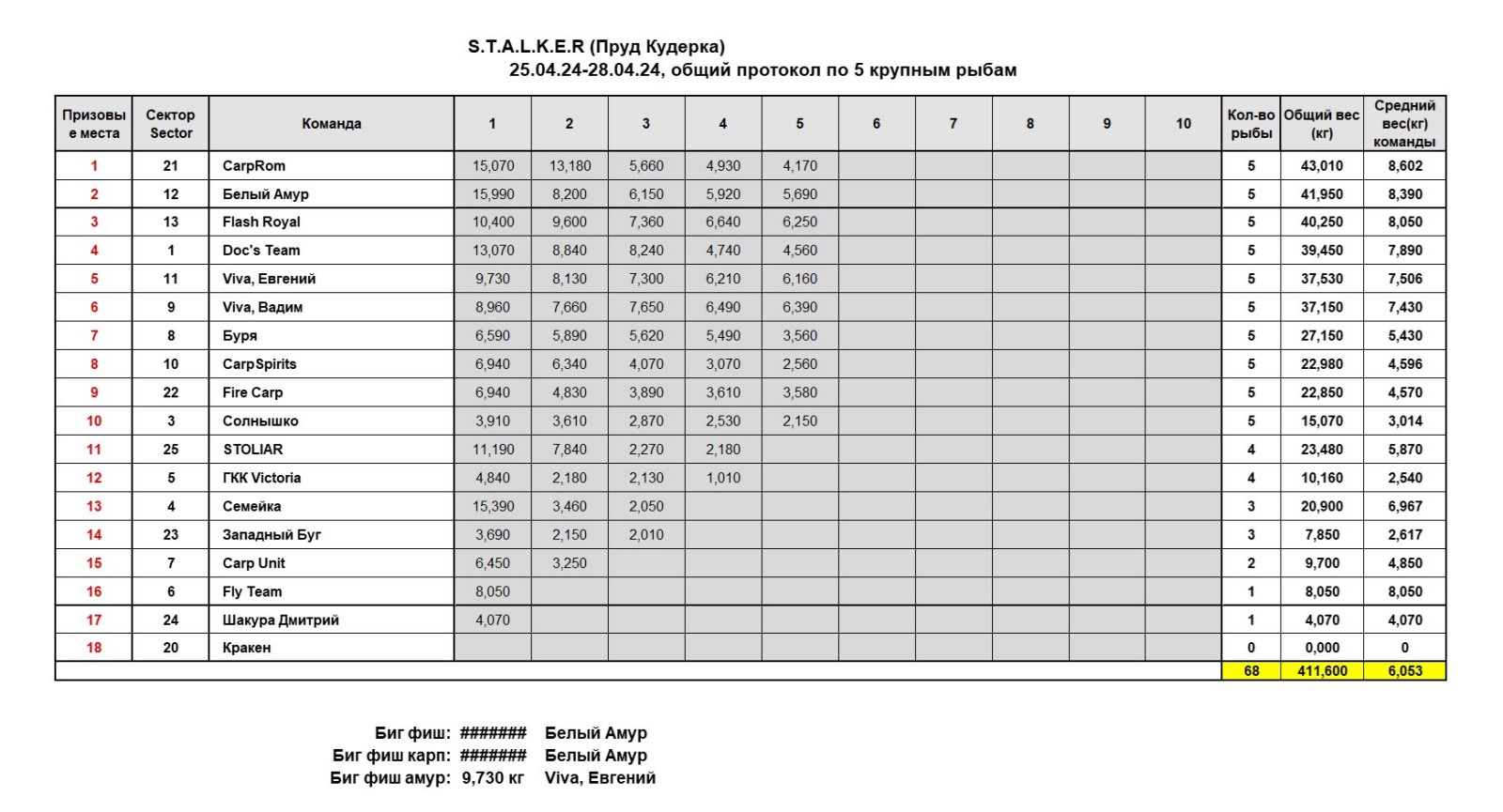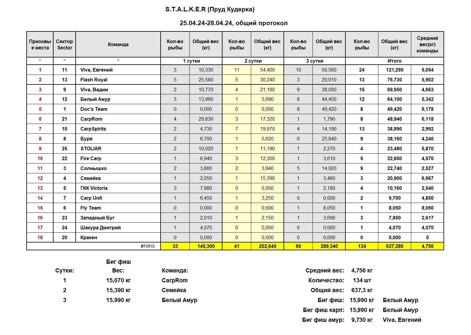 Положение о проведении карпового турнира «STALKER» С 25-28 апреля 2024 года!