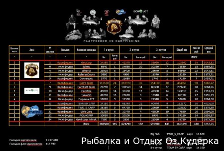 Турнир «Битва Гильдий» — это игра между двумя дисциплинами ловли карпа (флэтфидер и карпфишинг), в которой победит сильнейший!