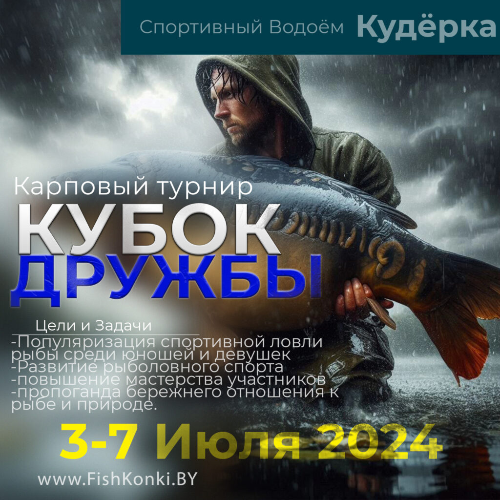 Турнир проводится с 20 по 23 июня 2024 года. Место проведения: озеро «Кудёрка» (арендатор ИП Цалей В.С.), близ д.Коньки, Ляховичский район. (координаты 53.046138962827435, 26.18413594900838).