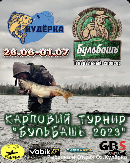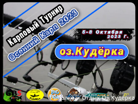 Положение о проведении карпового турнира » Кубок Кудёрки«. С 2 по 6 августа 2023 год Место проведения – пруд Кудёрка. Длительность — 95 часов. Состав команды: 2-3 участника (4) запасной. Количество команд 15 Формат турнира: по зонной системе, общий вес Количество удилищ: карповые 4 шт. Корм: (время кормления с 8.00 до 20.00), кобра – круглосуточно, ограничений по корму нет. Виды рыб: в зачет идут все пойманные карпы и амуры весом от 1 кг Безопасность рыбы: карповый мат, карповый подсак, наличие минимум 15 карповых мешков и антисептика РЕГЛАМЕНТ: 1. Основные положения: 1.1. Команда состоит из 2 (3) участника, четвертый запастной 1.2.В зачет идут пойманные карпы и белые амуры, весом 1 кг и больше. 1.3.леска без ограничений. 1.4 Формат проведения соревнований: По Зонам ! Зона А Зона Б Зона С БИГ фиш турнира (карп или амур) в суточный биг фиш не участвует. ВНИМАНИЕ! Посещение гостей только по светлому времени суток, ночевать запрещено, въезд на территорию только по согласованию с организатором турнира.