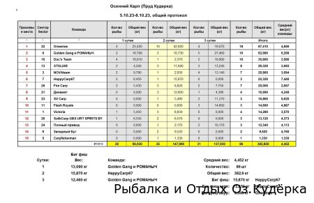 БИГ фиш турнира (карп или амур) в суточный биг фиш не участвует.